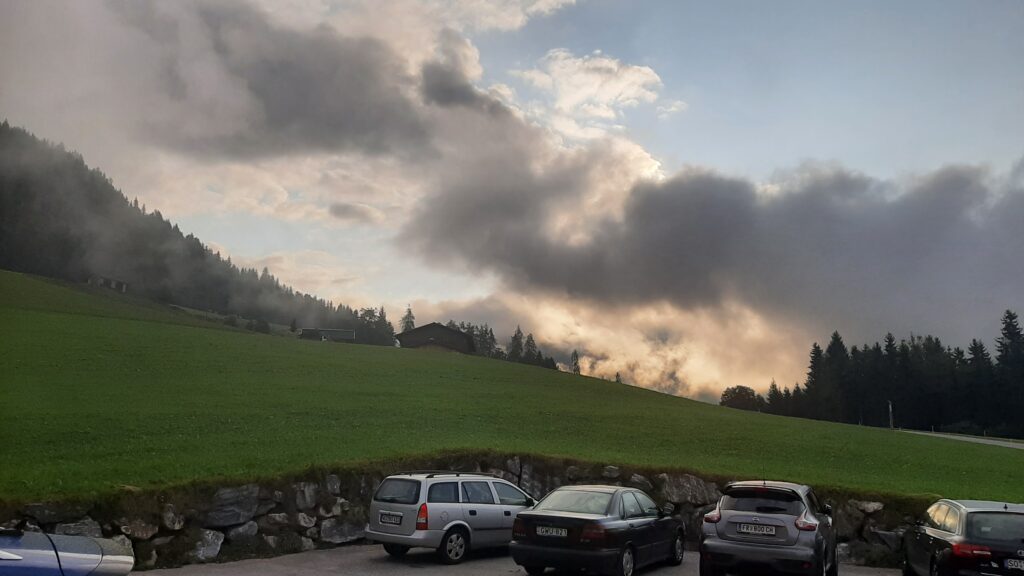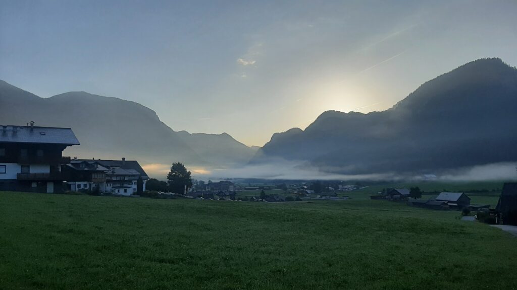 Als ich losging lag noch eine schöne Wolkendecke über Gosau.