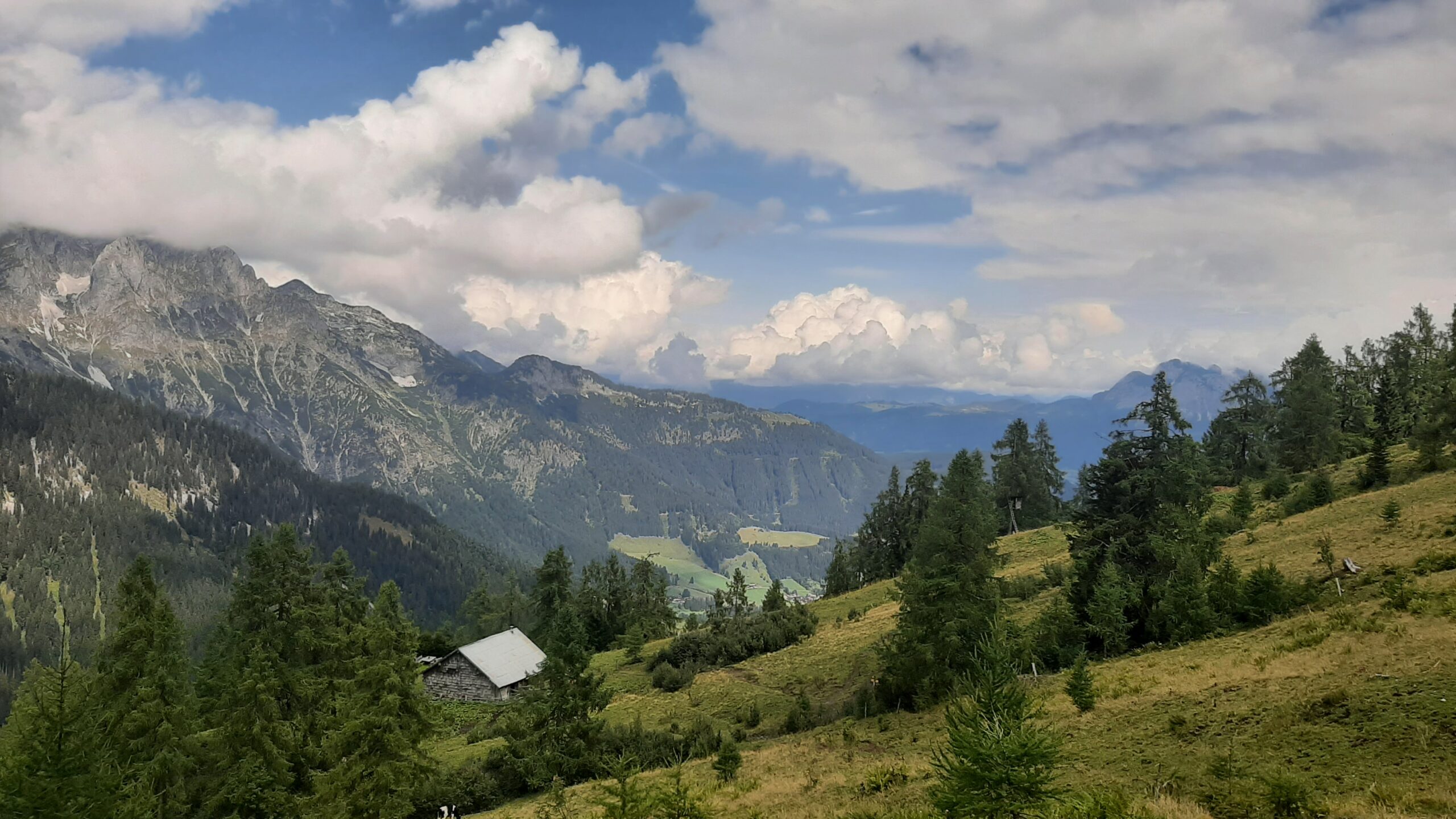 Nach dem Essen genoss ich noch das immer besser werdende Wetter und ging dann weiter bergauf/bergab an vielen wunderschönen Almen vorbei Richtung Lungötz.