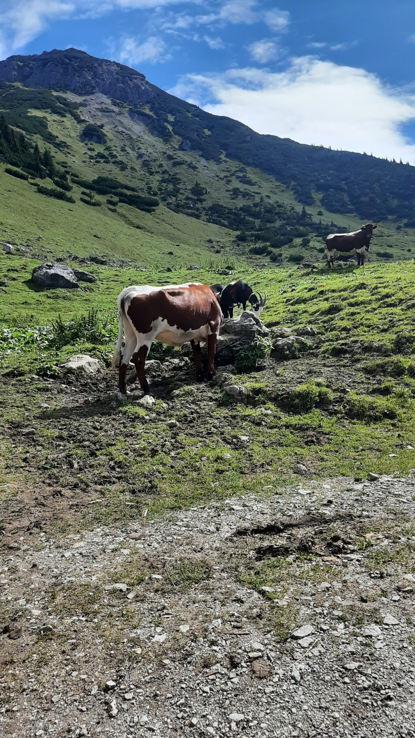 Anita (die Hüttenwirtin) erzählte mir, dass heute bereits eine Frau von den Kühen an denen ich vorbeigegangen bin, attackiert wurde, da sie einen Hund dabei hatte. Also hatte ich mich nicht getäuscht und die Anspannung der Kühe gemerkt. Gut dass ich ihnen Vorrang gelassen habe und sie danach umklettert bin.