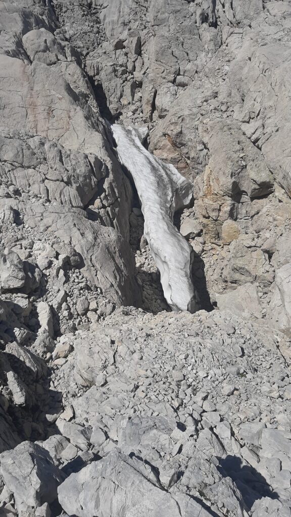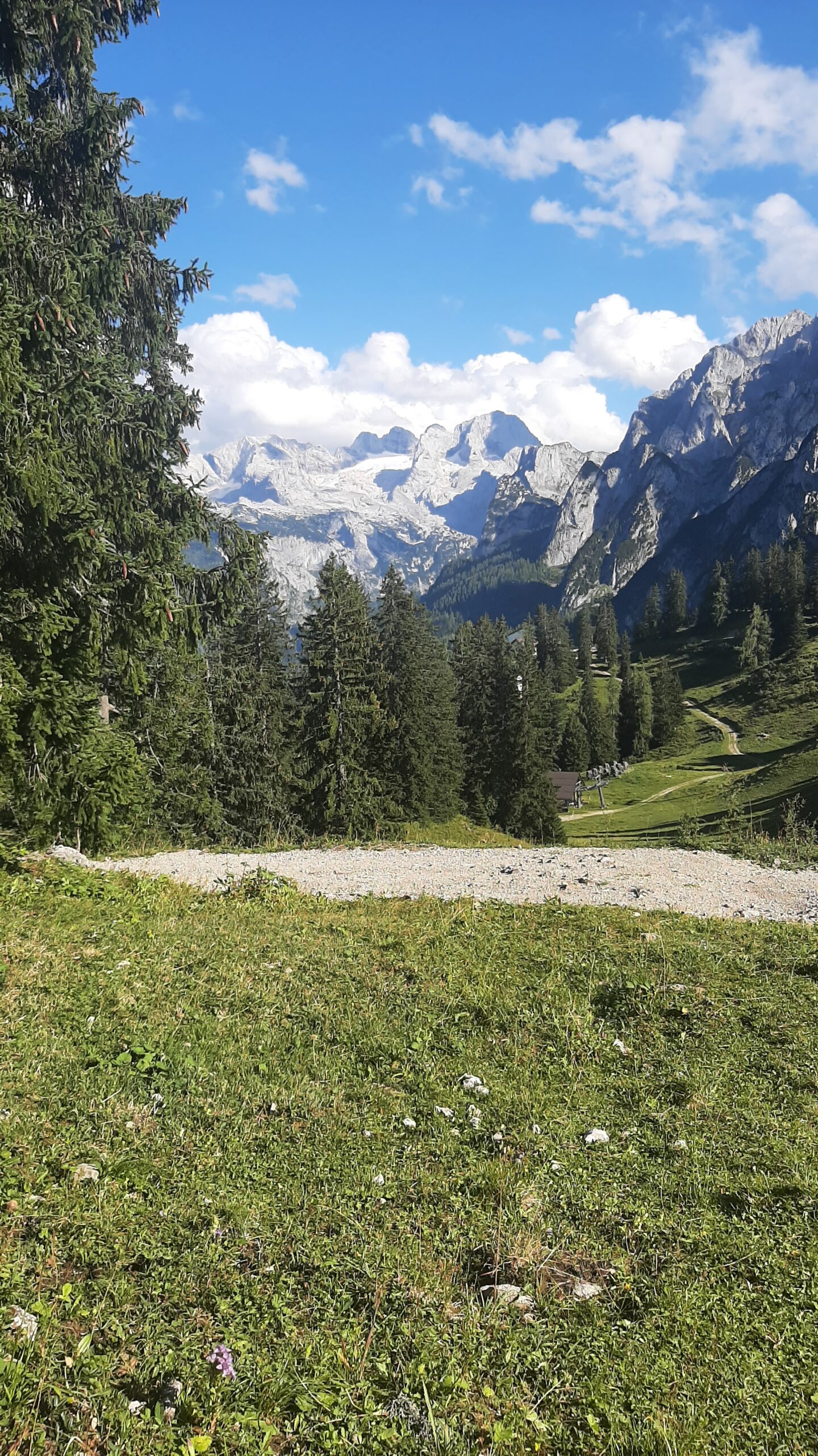 Schließlich überquerte ich beim Törleck den Gosaukamm und machte dann in der Nähe der Seilbahnen nochmal eine Pause und beobachtete die Unmengen von Touristen, die sich hier tummelten. Hier war es nicht mehr so schön einsam, wie ich es die ersten Tage meiner Wanderung gewohnt war. Dafür konnte ich einen tollen Blick auf den Dachstein erhaschen.