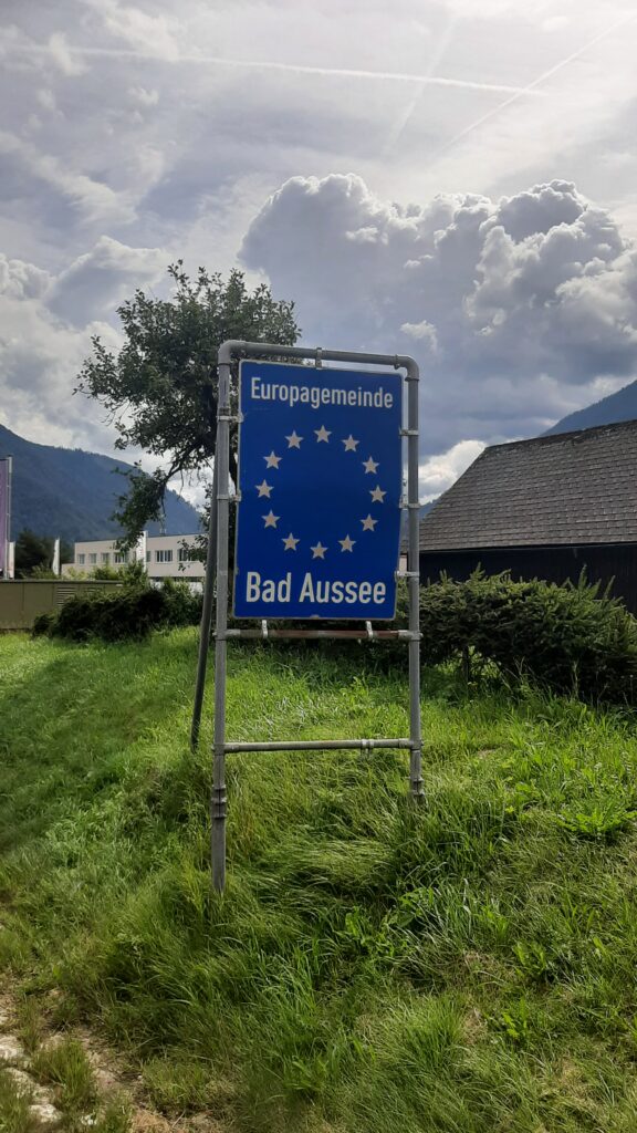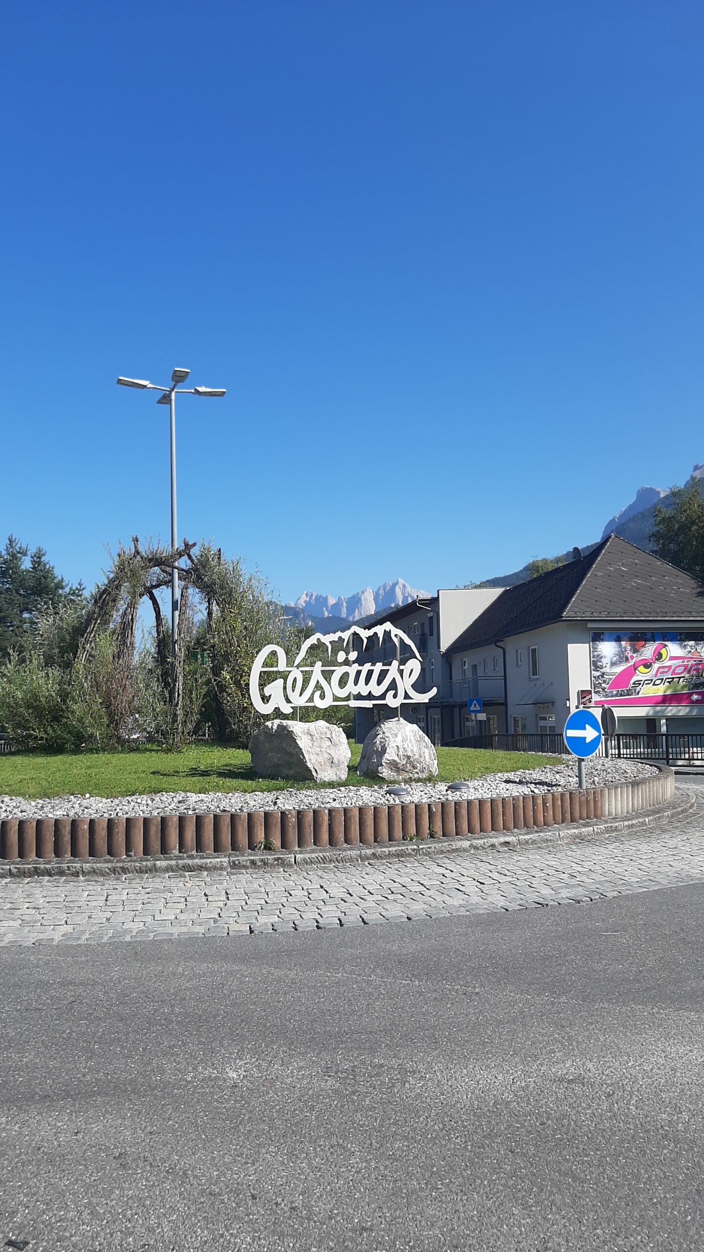 Die Überplane meines Zelts war waschelnass, aber ich packte alles zusammen und nach einem leckeren Automatenkaffe (achtung Sarkasmus) stapfte ich Richtung Bad Goisern los. Entlang der Straße ging es ca. 1 Stunde bis ich Bad Goisern erreichte. Von dort lotste mich mein Navi schnell aus der Stadt raus auf einen wunderschönen Forstweg entlang eines kleinen Baches Richtung Bad Aussee. Dieser Weg führte mich bergauf/bergab, ohne eine Menschenseele zu sehen und natürlich auch ohne Handyempfang, nach 2 Stunden nach Bad Aussee. Während meines „Spaziergangs“ musste ich das erste mal seit langem wiedermal daran denken, dass sich hier auch Wölfe und manchmal sogar Bären herumtreiben 😉 Nachdem ich wusste, dass beides sehr scheue Tiere sind, machte ich immer wieder Lärm und plauderte vor mich hin….schließlich wollte ich ja keine Tiere erschrecken (die danach mich erschrecken würden).