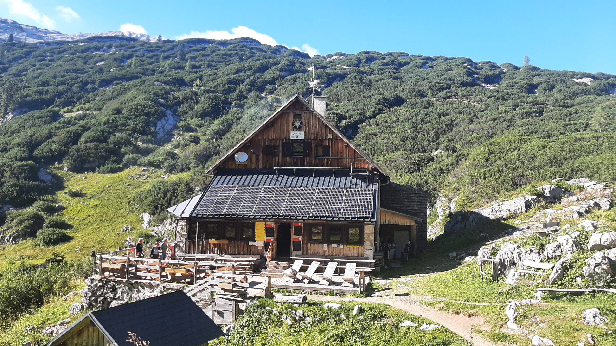 Als ich die letzten Stiegen zur Terrasse der Hütte hochstapfte wurde ich schon herzlich von Anita (inoffizielle Chefin) begrüßt und gefragt, ob ich denn reserviert hätte. Ich verneinte und setzte mich an einen freien Tisch auf der sonnigen Terrasse.