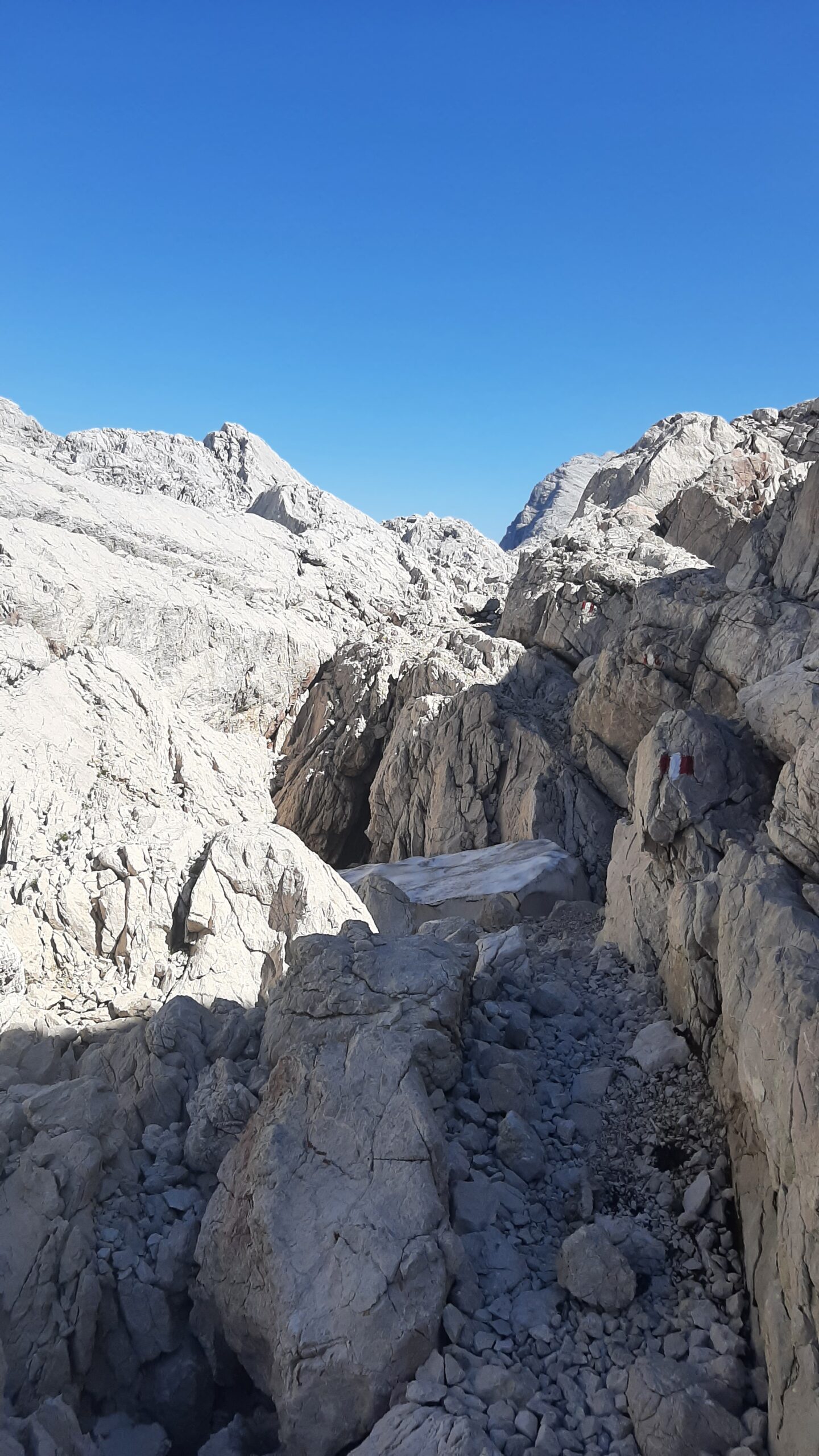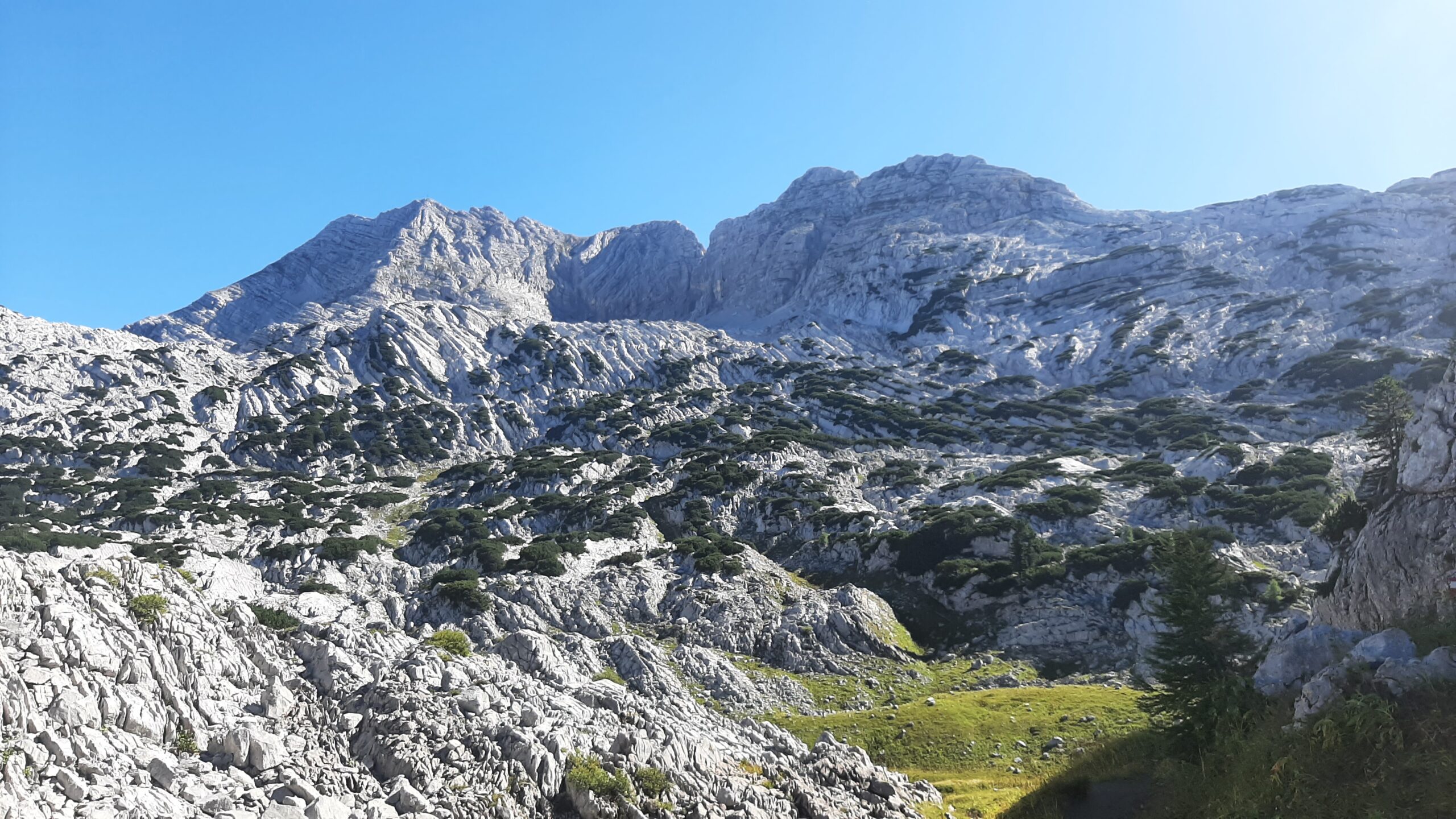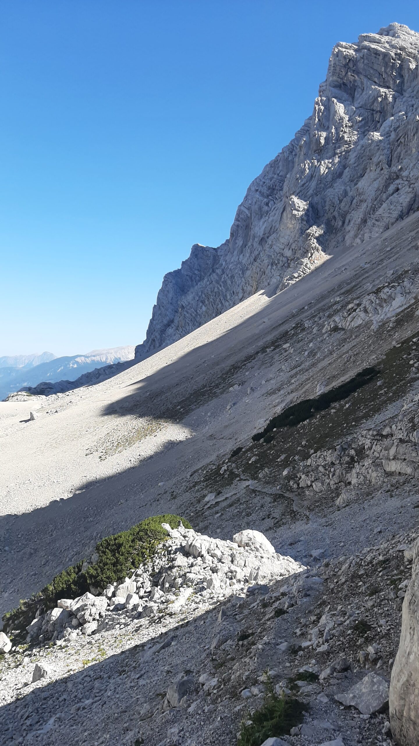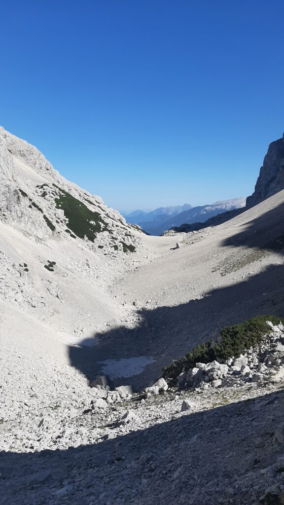 Dann ging es schließlich bergab durch ein Meer aus Schotter und einem herrlichen Blick ins Tal, Richtung Prielschutzhaus.