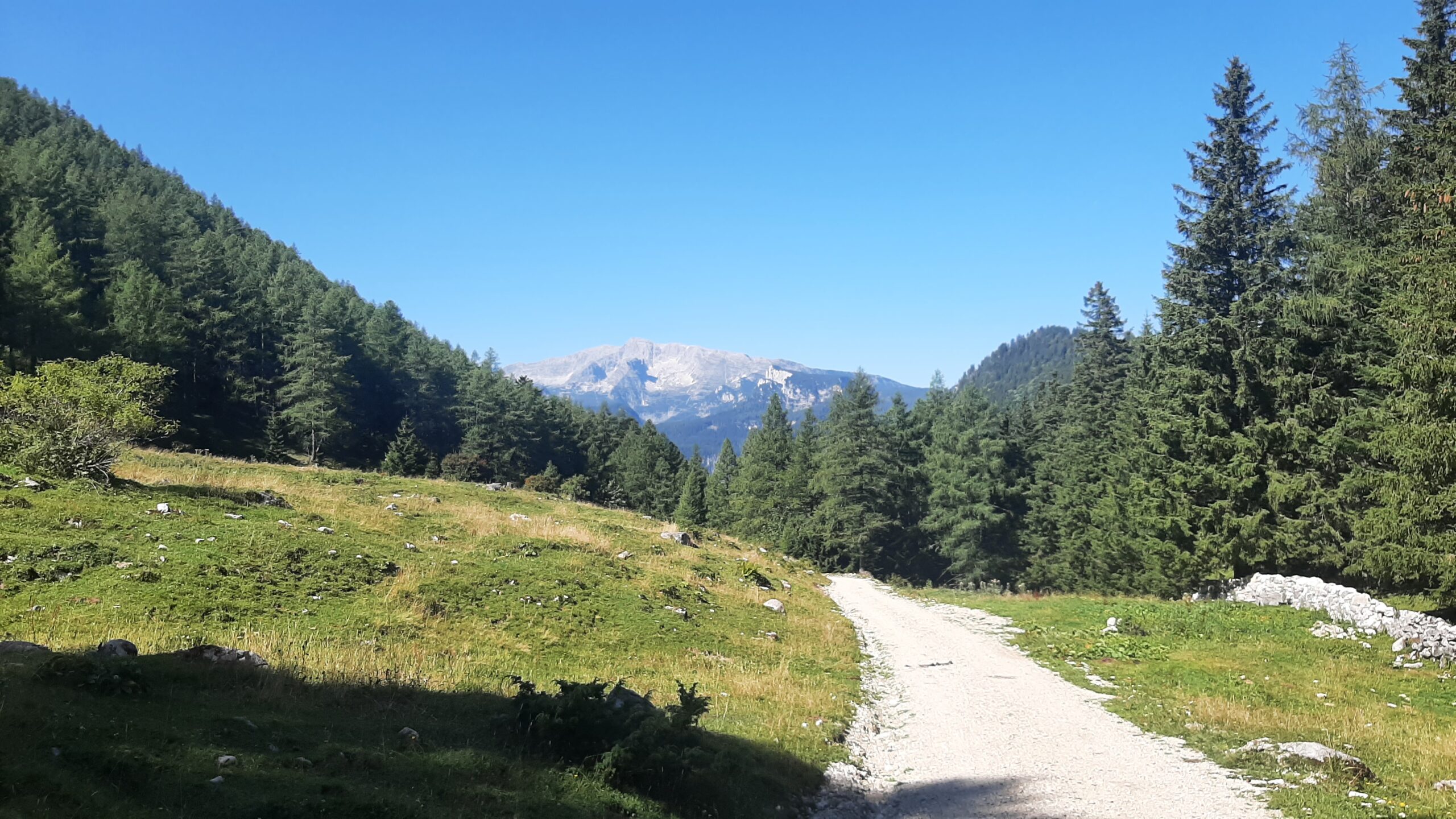 Als das Zelt trocken war, packte ich mein Zeug zusammen und ging die Straße weiter hinauf, bis diese immer kleiner wurde und in einem Forstweg endete. Eine unendlich lange Forststraße führte mich an einem Zeltplatz unseres Bundesheeres vorbei, die gerade ihr Nachtlager zusammenpackten und in ihr schwer bewaffnetes Fahrzeug einluden.